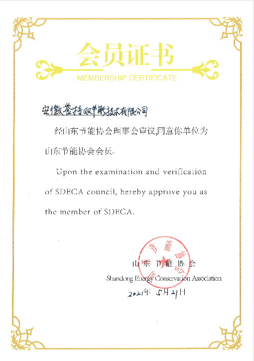 2021年5月21日,經(jīng)山東節(jié)能協(xié)會(huì)理事會(huì)審核,我公司成為山東節(jié)能協(xié)會(huì)會(huì)員。