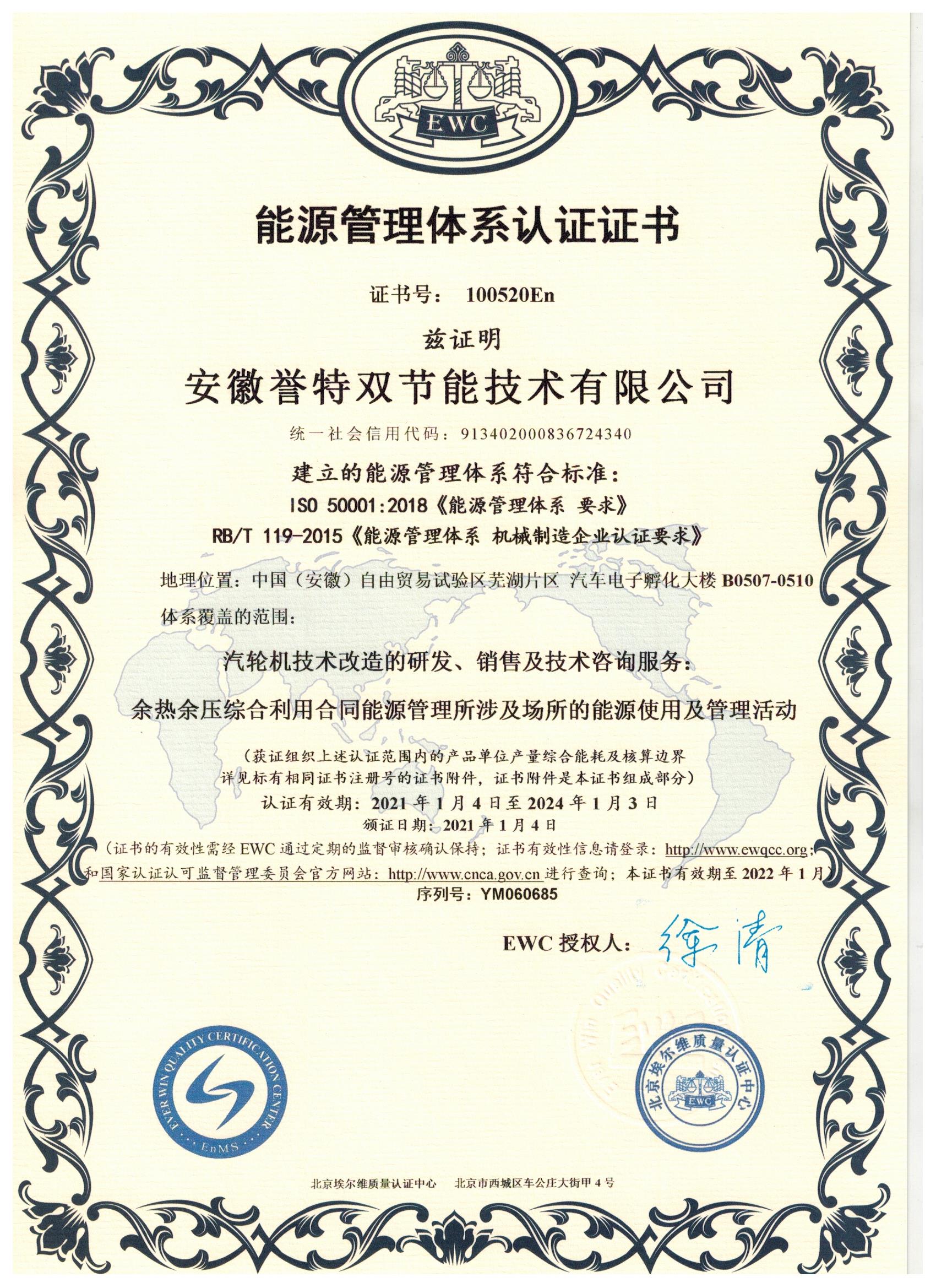 2020年1月7日,我公司能源管理體系順利通過北京埃爾維質(zhì)量認證中心的現(xiàn)場審核,并榮獲能源管理體系認證證書。