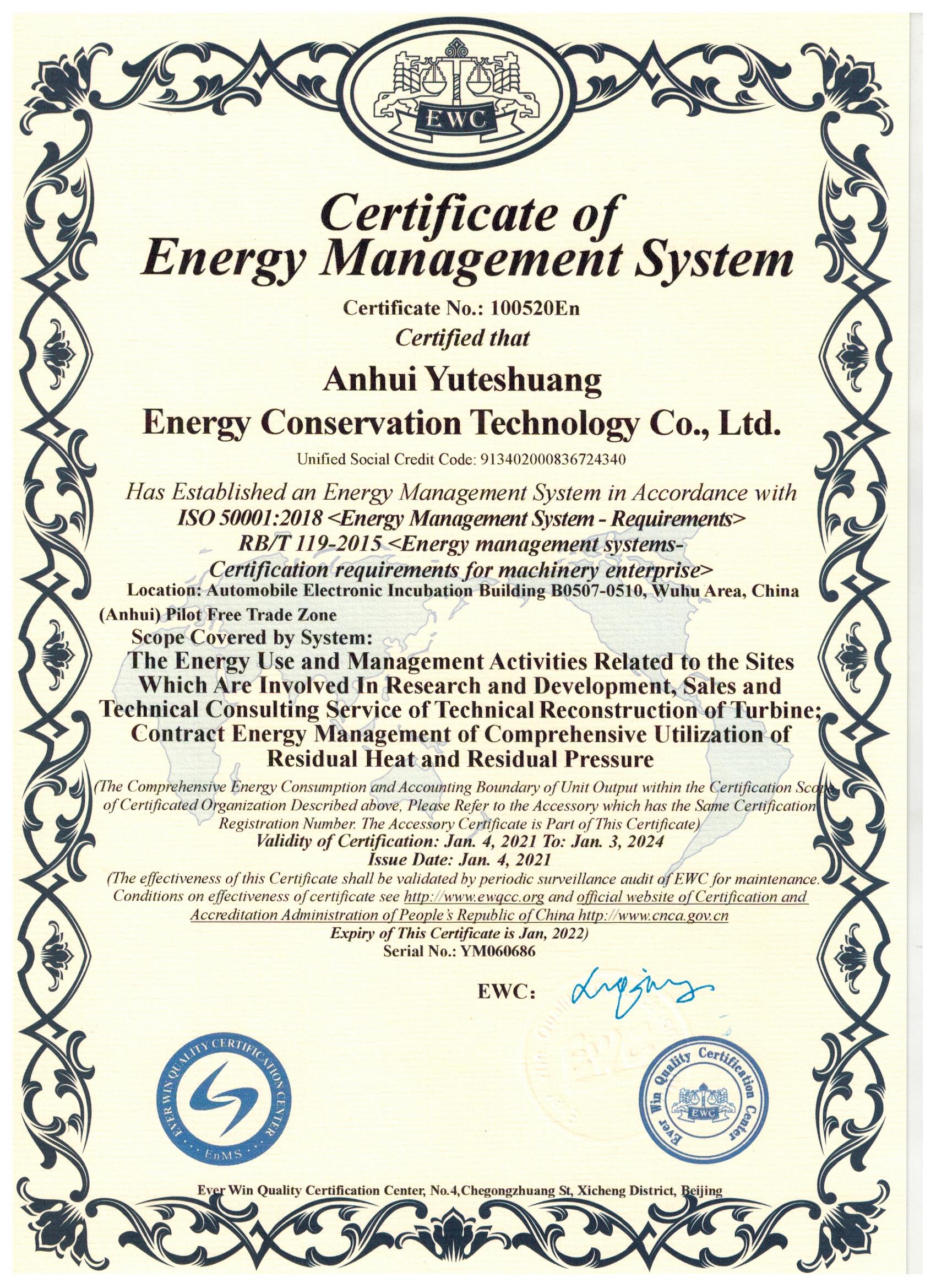 此次能源管理體系認證審核工作的順利完成,不僅是對我公司能源管理體系工作的充分認可,同時也標志著公司管理體系建設再上新臺階,為工業(yè)節(jié)能領(lǐng)域熱工系統(tǒng)合同能源管理主營業(yè)務的廣泛市場開拓奠定堅實的軟件支撐基礎(chǔ)。