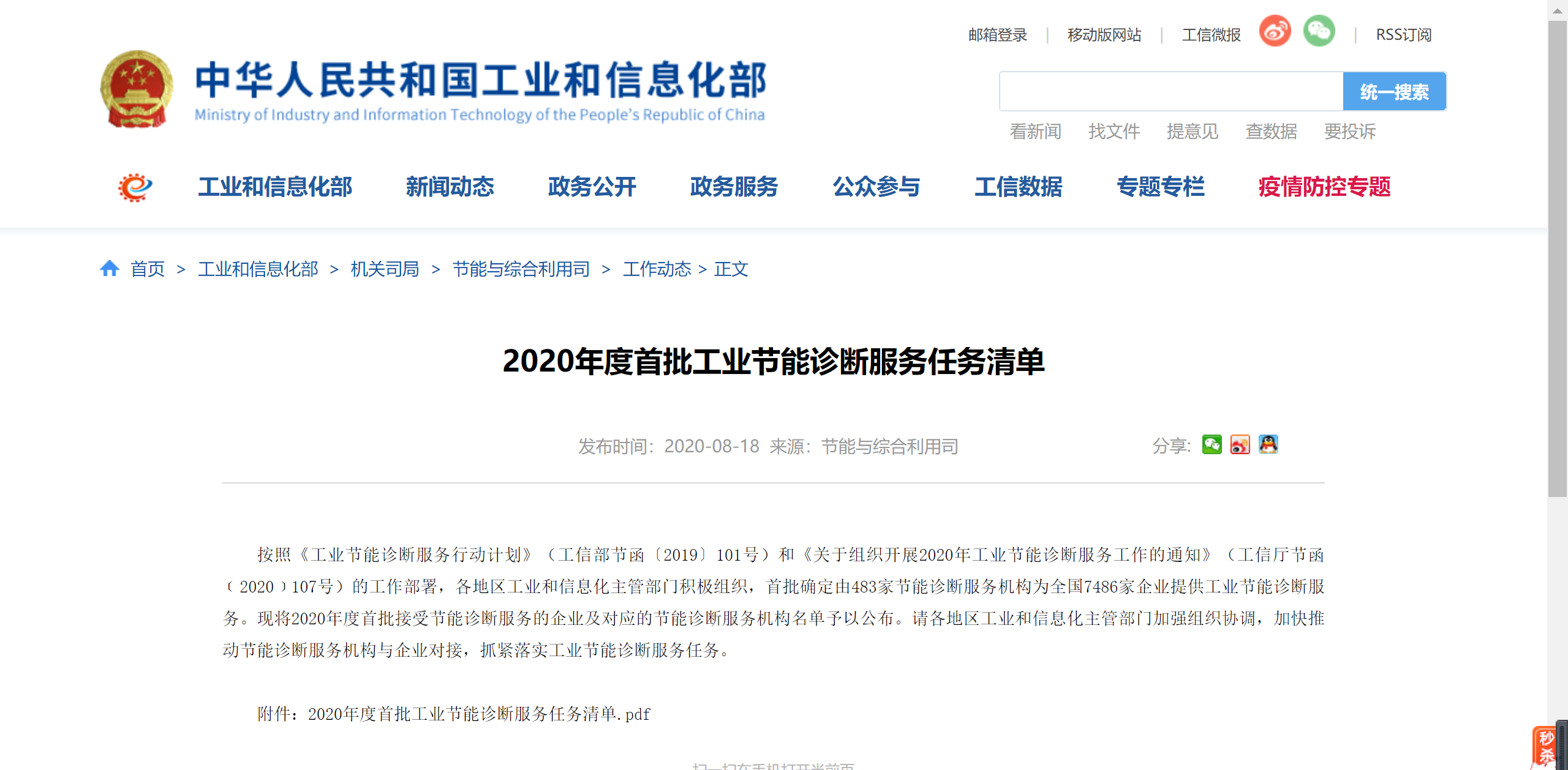 此次為我公司自工信部2019年開始啟動該項(xiàng)工作以來,第二次中標(biāo)節(jié)能診斷服務(wù)機(jī)構(gòu)。