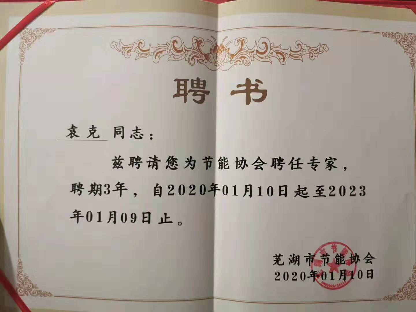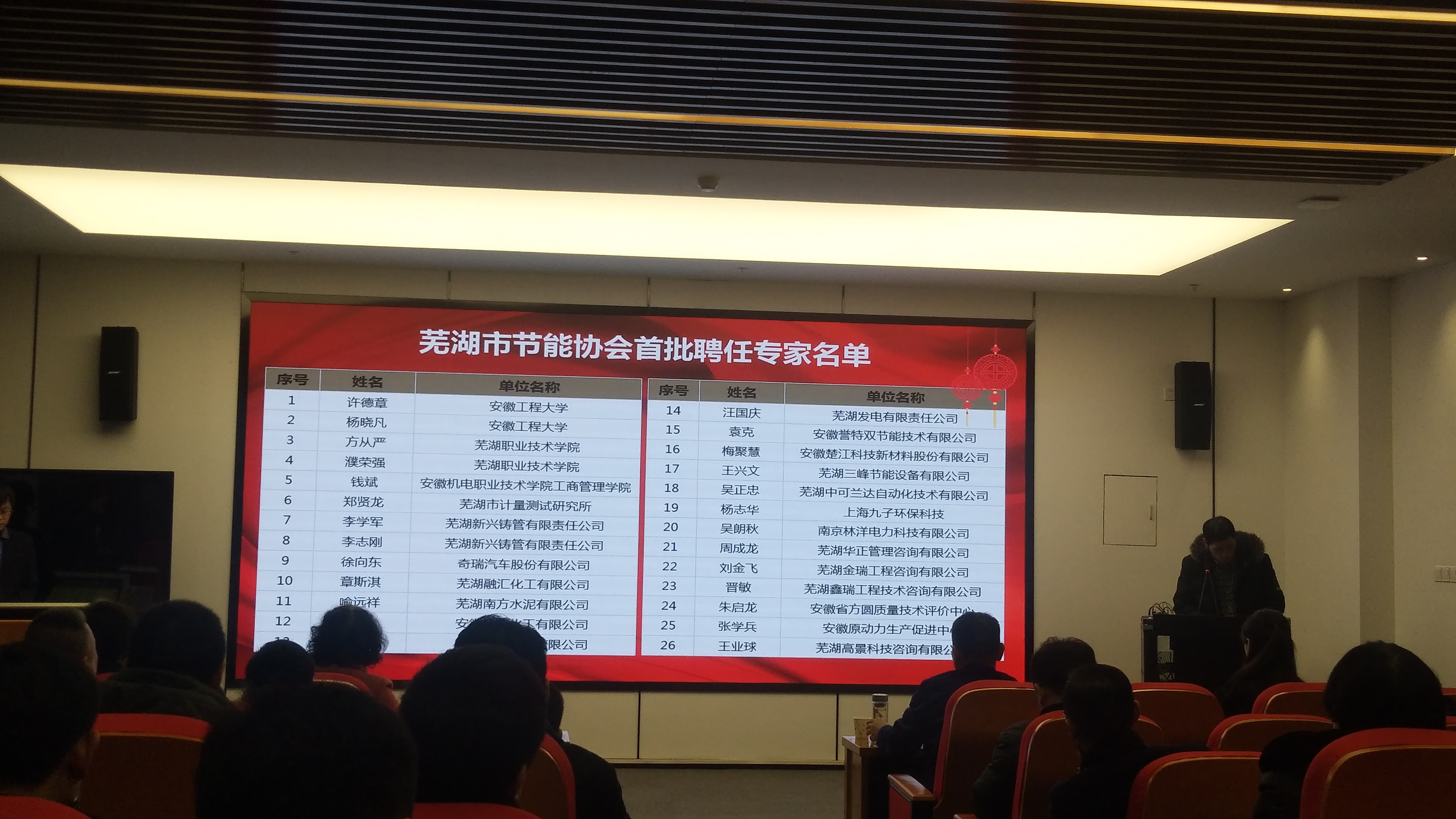 1月10日,蕪湖市節(jié)能協(xié)會年會暨節(jié)能宣貫對接交流會在蕪湖市企業(yè)服務(wù)中心順利召開,會上進行了首批節(jié)能協(xié)會專家聘任儀式,我公司總經(jīng)理袁克先生獲聘協(xié)會專家,并做《大工業(yè)領(lǐng)域熱工系統(tǒng)綜合節(jié)能技改提效解決方案》專題匯報。