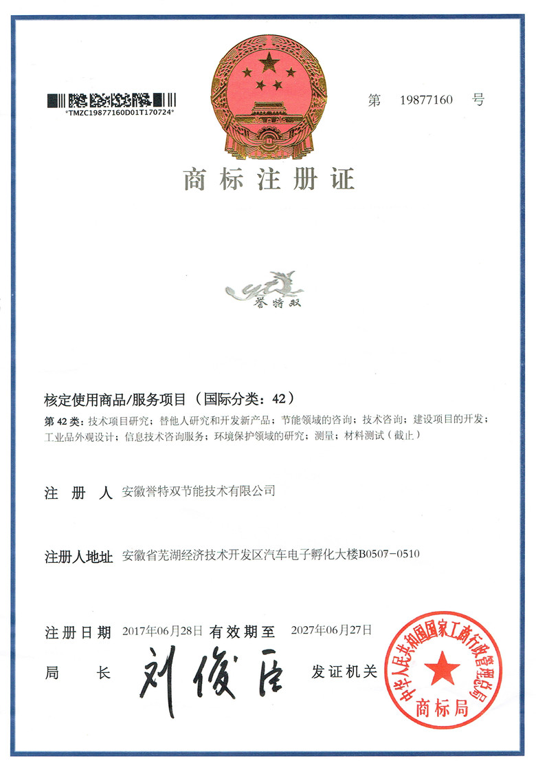 商標(biāo)是知識產(chǎn)權(quán)的重要組成部分,是企業(yè)的無形資產(chǎn),凝聚著生產(chǎn)者、經(jīng)營者的智慧和勞動(dòng),體現(xiàn)著企業(yè)的經(jīng)營成果。我公司申請的“譽(yù)特雙”商標(biāo)的成功注冊,不僅使該標(biāo)志能夠得到國家強(qiáng)制力的保護(hù),而且對豐富企業(yè)品牌,維護(hù)企業(yè)名稱,擴(kuò)大企業(yè)影響,都將具有積極的意義;標(biāo)志著譽(yù)特雙在品牌建設(shè)方面取得了一個(gè)里程碑的勝利,勝利得之不易,我們會(huì)通過全體員工的不懈努力來維護(hù)譽(yù)特雙節(jié)能公司的信譽(yù),不斷提高客戶對我們品牌的認(rèn)可度,從而使商標(biāo)的價(jià)值不斷提升,為企業(yè)客戶提供更優(yōu)質(zhì)的節(jié)能服務(wù)。