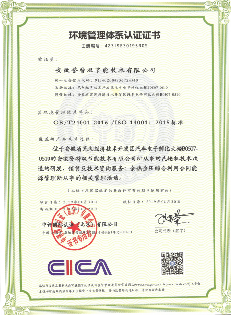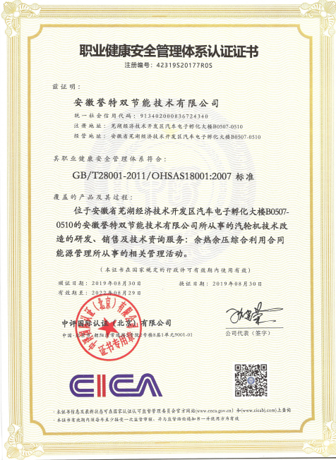 8月31日,公司質(zhì)量、環(huán)境、職業(yè)健康安全管理體系順利通過中評(píng)國際認(rèn)證(北京)有限公司的現(xiàn)場(chǎng)審核,再次認(rèn)證了質(zhì)量管理體系,以及新認(rèn)證了環(huán)境、職業(yè)健康安全管理體系,并榮獲三體系認(rèn)證證書。