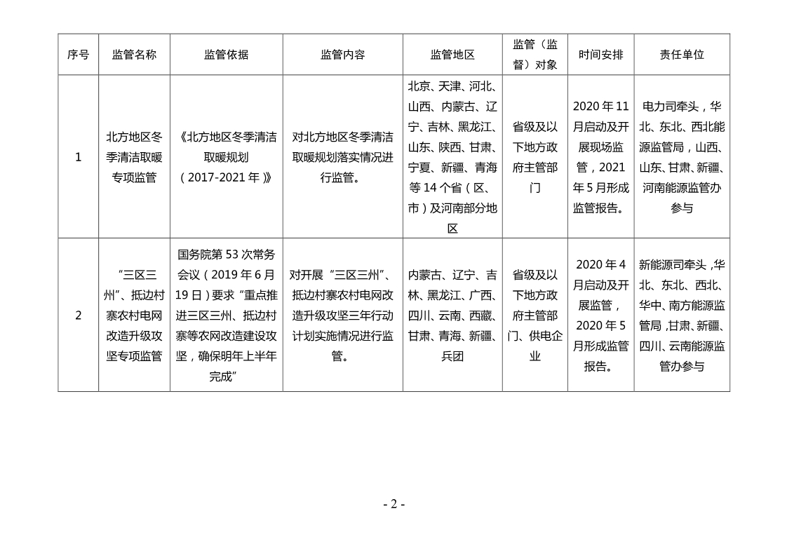 附件:2020年能源監(jiān)管重點(diǎn)任務(wù)清單