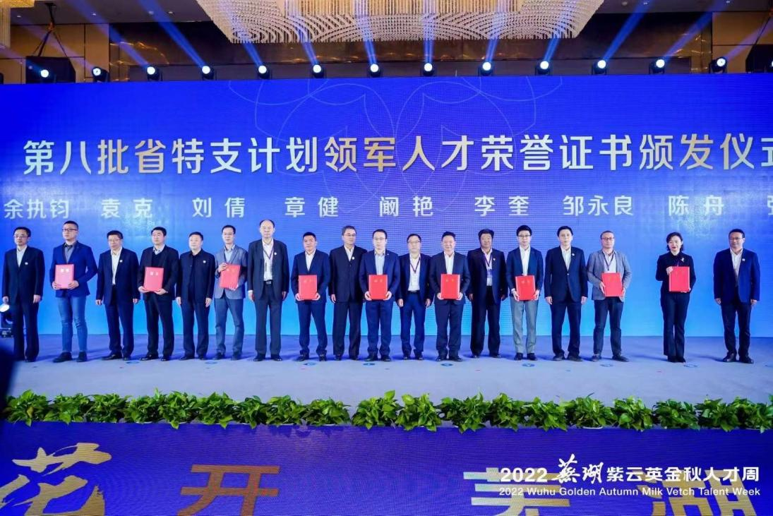 近日,安徽省委組織部公布了第八批“特支計劃”入選名單,我公司總經(jīng)理袁克同志成功入選安徽省“特支計劃”創(chuàng)新創(chuàng)業(yè)領(lǐng)軍人才,受邀參加2022蕪湖紫云英金秋人才周“特支計劃”領(lǐng)軍人才榮譽證書頒獎儀式。