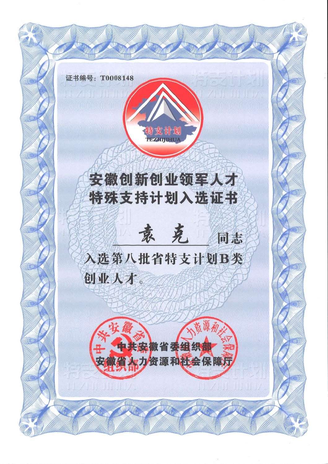 熱烈祝賀公司總經(jīng)理袁克同志認(rèn)定為安徽省第八批“特支計劃”領(lǐng)軍人才