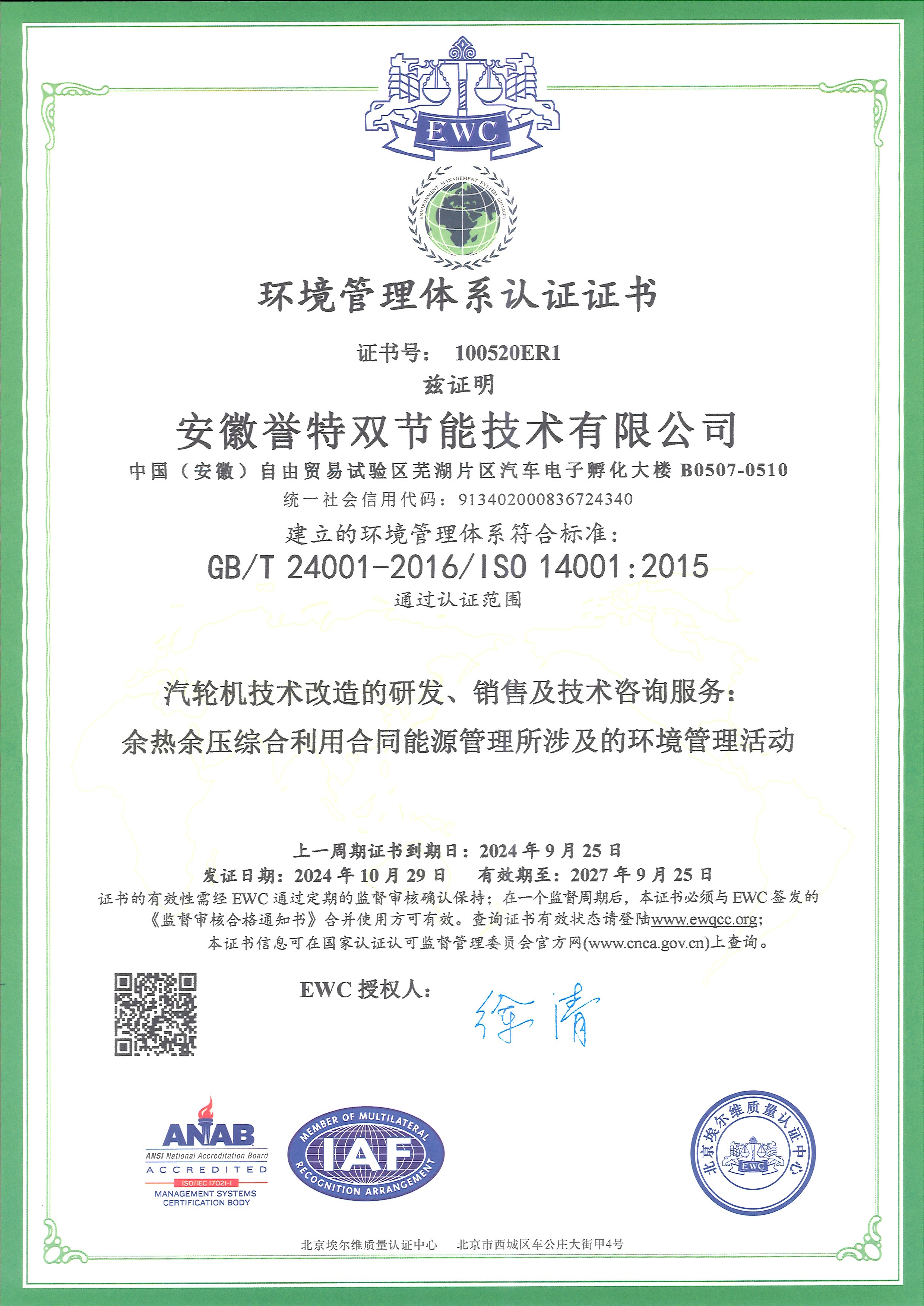 通過三體系認(rèn)證,公司建立了系統(tǒng)、開放、高效的管理體系,使企業(yè)的管理更加規(guī)范化、標(biāo)準(zhǔn)化,進(jìn)而提高企業(yè)的運(yùn)營效率和市場競爭力,在展示企業(yè)良好形象的同時,推動企業(yè)持續(xù)改進(jìn)和自我完善,由此提高公司的信譽(yù)和客戶信任度,為更多用能單位提供高質(zhì)量、高水平服務(wù)。