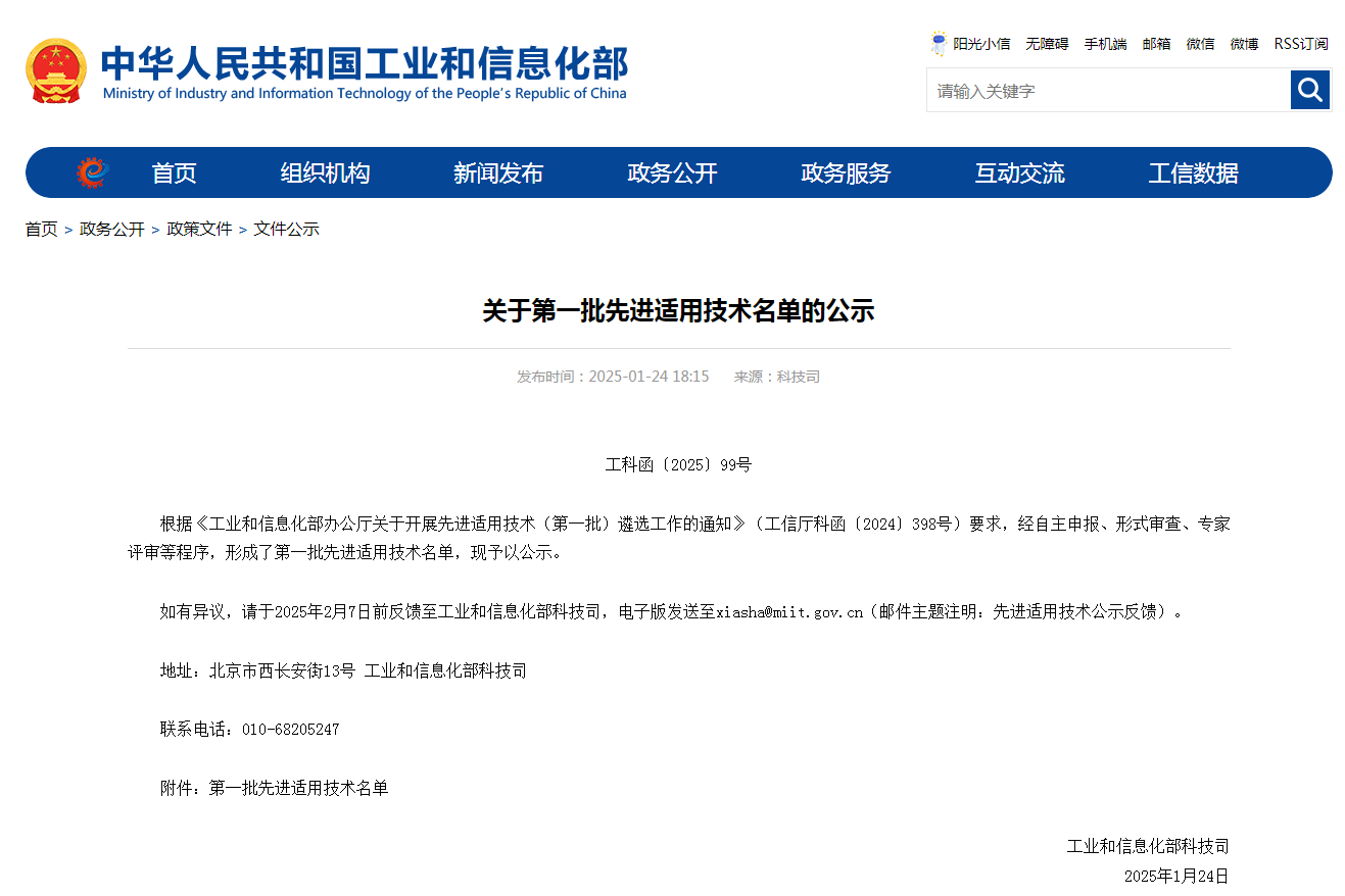 公司入選工信部先進(jìn)適用技術(shù)(第一批)目錄