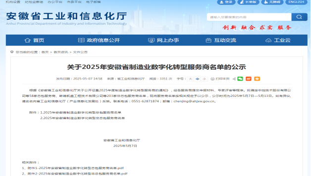 公司入選2025年安徽省制造業(yè)數(shù)字化轉(zhuǎn)型服務(wù)商名單
